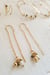 Boucles d'oreilles chaînes très fines, elles mesurent 50mm de longueur et sont composées de perles plaquées or, de nacre olive et petite pierre noires en hématite.