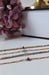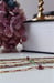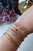Modèle 1 : Bracelet composé d'une chaîne tiges dorées 18 carats et de perles de verre prunes ou tilleuls. Une petite chaîne d'allonge permet de régler le bracelet.